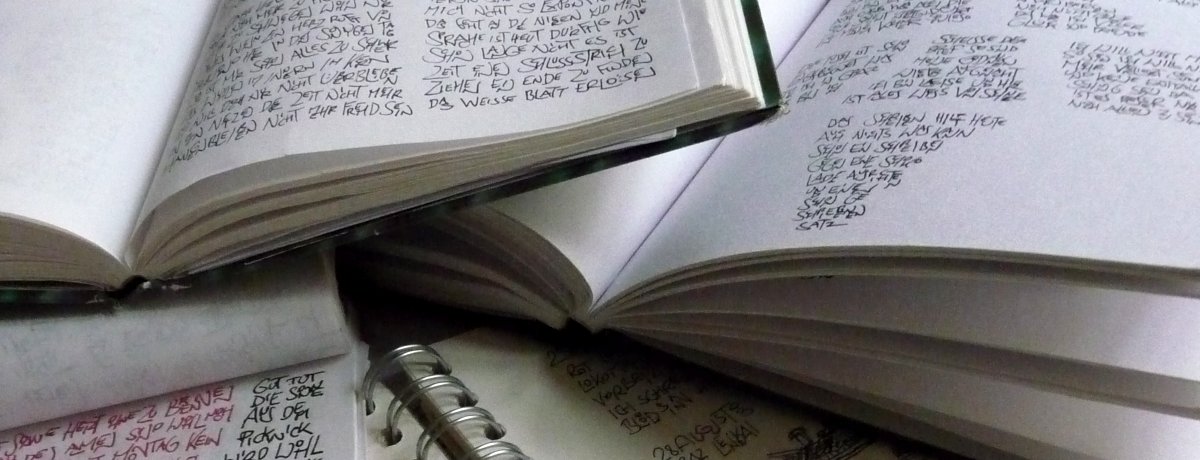 Vor einigen Jahren begann es, die Buchstaben meiner Worte wollten ihr eigenes Leben, ihre Form, ihren Raum. Und immer mehr wuchsen sie auf das Papier, wuchsen in meine leeren Bücher. Jetzt schreibe ich fast nur noch auf diese Art.
